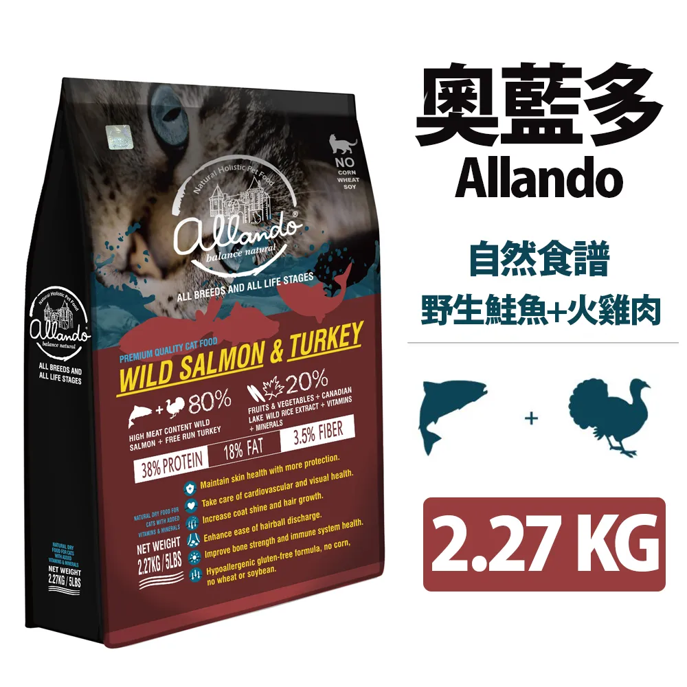 Allando 奧藍多 天然無穀貓鮮糧 野生鮭魚+火雞肉 2.27KG